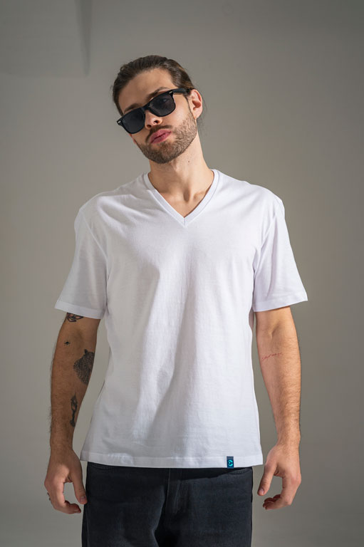 Camiseta de jersey, escote en V, 100% algodón.