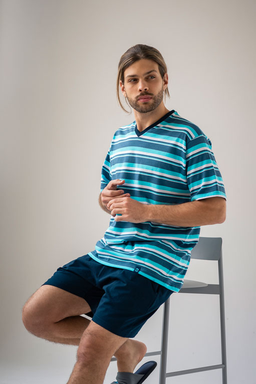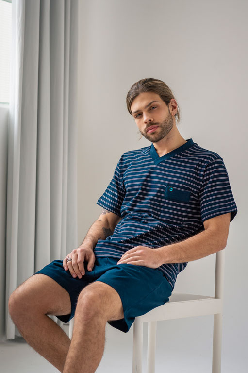 Pijama de jersey rayado ancho. 100% algodón