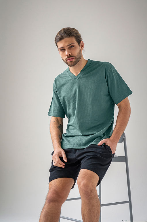 Pijama acanalado escote en V.